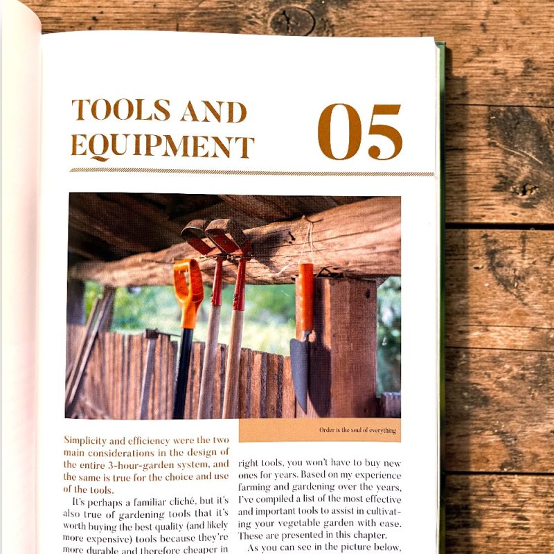 Barnabas’ professional background and diverse experience as a farmer make the concept of “The 3-hour garden” perfectly authentic for me. The book is a reliable compass for future vegetable gardeners with an experimental spirit. Pragmatic, easy-to-understand, and rich in detail, it provides a lot of useful practical advice and reference points for all planning and implementation processes of backyard organic production. It supports and orients with sober arguments and counter-arguments, all of which is illustrated with eye-catching, sophisticated images. I reserved my 100 square meters in advance for the spring season in my grandmother’s garden, so that I could adapt what I read in the book and create my own experimental beds.
