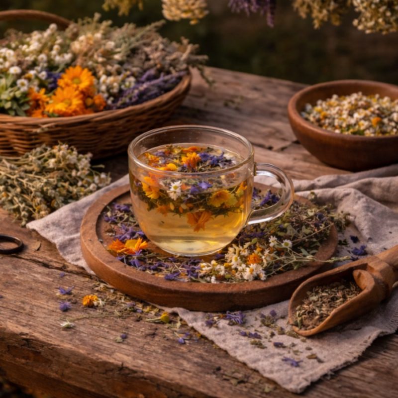 A teakészítéshez általában egy teáskanálnyi szárított növényt használj egy csésze forró (nem lobogó) vízhez. Fedd le, hagyd állni 5–10 percig, majd szűrd le. A keverékeket érdemes kísérletezve kialakítani: a lágyabb növények adják az alapot, az erőteljesebbek csak fűszerként kerüljenek bele.